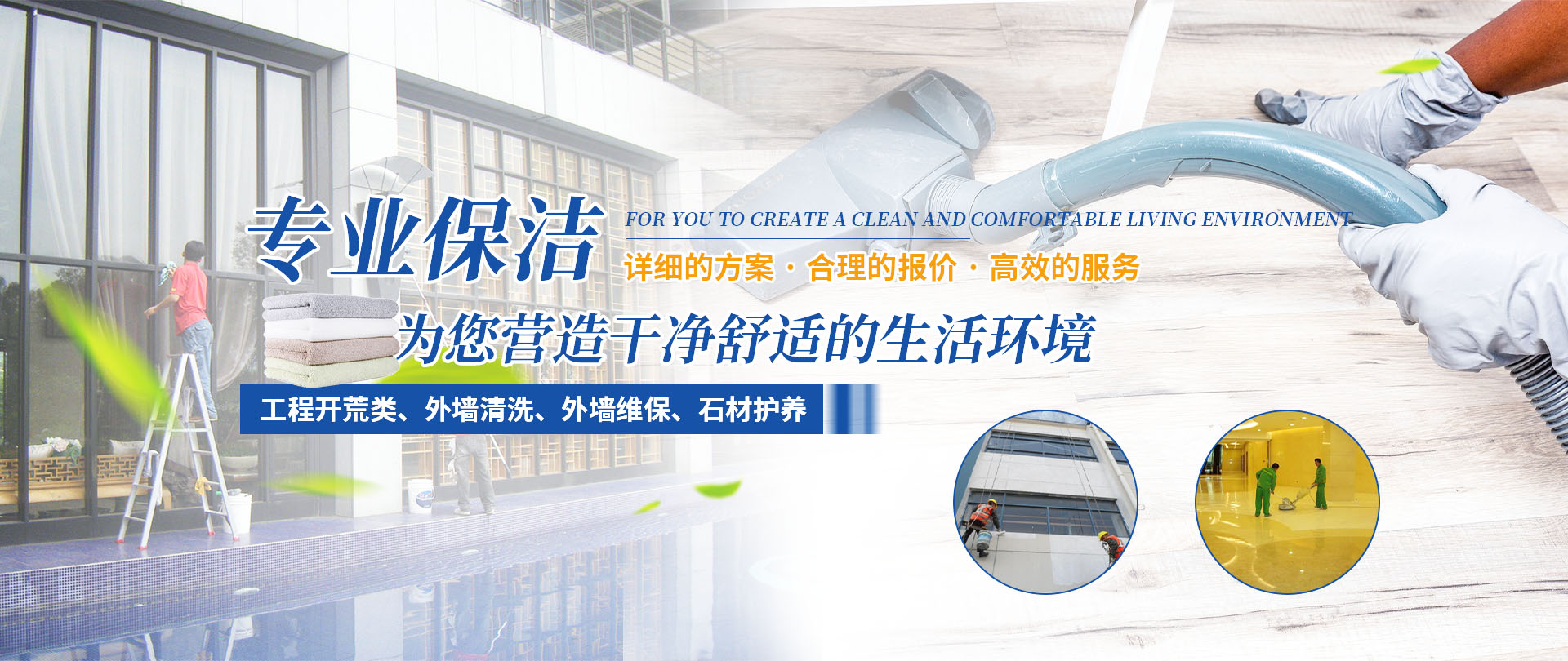 四川梓淇清潔服務(wù)有限公司,是一家從事物業(yè)管理,外墻清洗,外墻維保,綜合類開荒保潔企業(yè)公司。   專業(yè)從事物業(yè)管理、工程開荒類、外墻清洗、外墻維保、石材護(hù)養(yǎng)服務(wù)。公司有正規(guī)培訓(xùn)、擁有專業(yè)的保潔隊(duì)伍;齊全的清潔設(shè)備;規(guī)范的作業(yè)流程;主動(dòng)的服務(wù)意識(shí)。   秉承“環(huán)保、健康、科技、創(chuàng)新、專業(yè)”的服務(wù)理念,為您提供詳細(xì)的施工方案,合理的報(bào)價(jià),高效的服務(wù),全力為客戶創(chuàng)建一個(gè)綠色環(huán)保、清新的環(huán)境,我們的服務(wù)宗旨是:只要您一個(gè)電話,我們將為您營(yíng)造一個(gè)干凈舒適的生活環(huán)境。